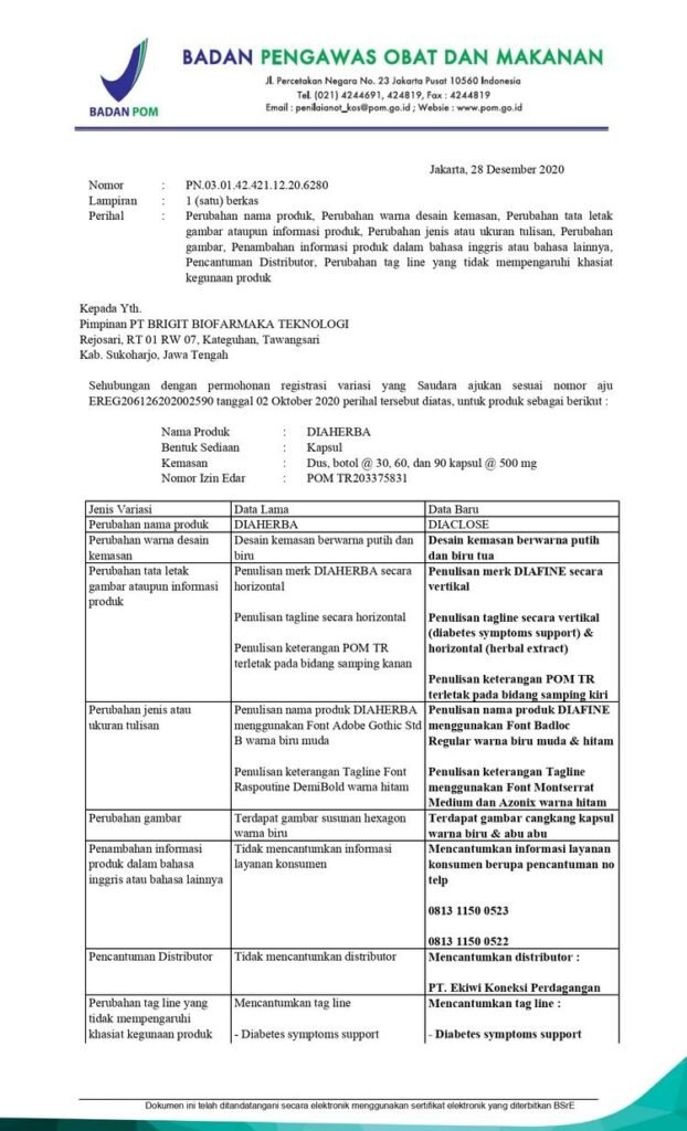 PRODUK TELAH DISERTIFIKASI OLEH KEMENTERIAN KESEHATAN, POM TR203375831